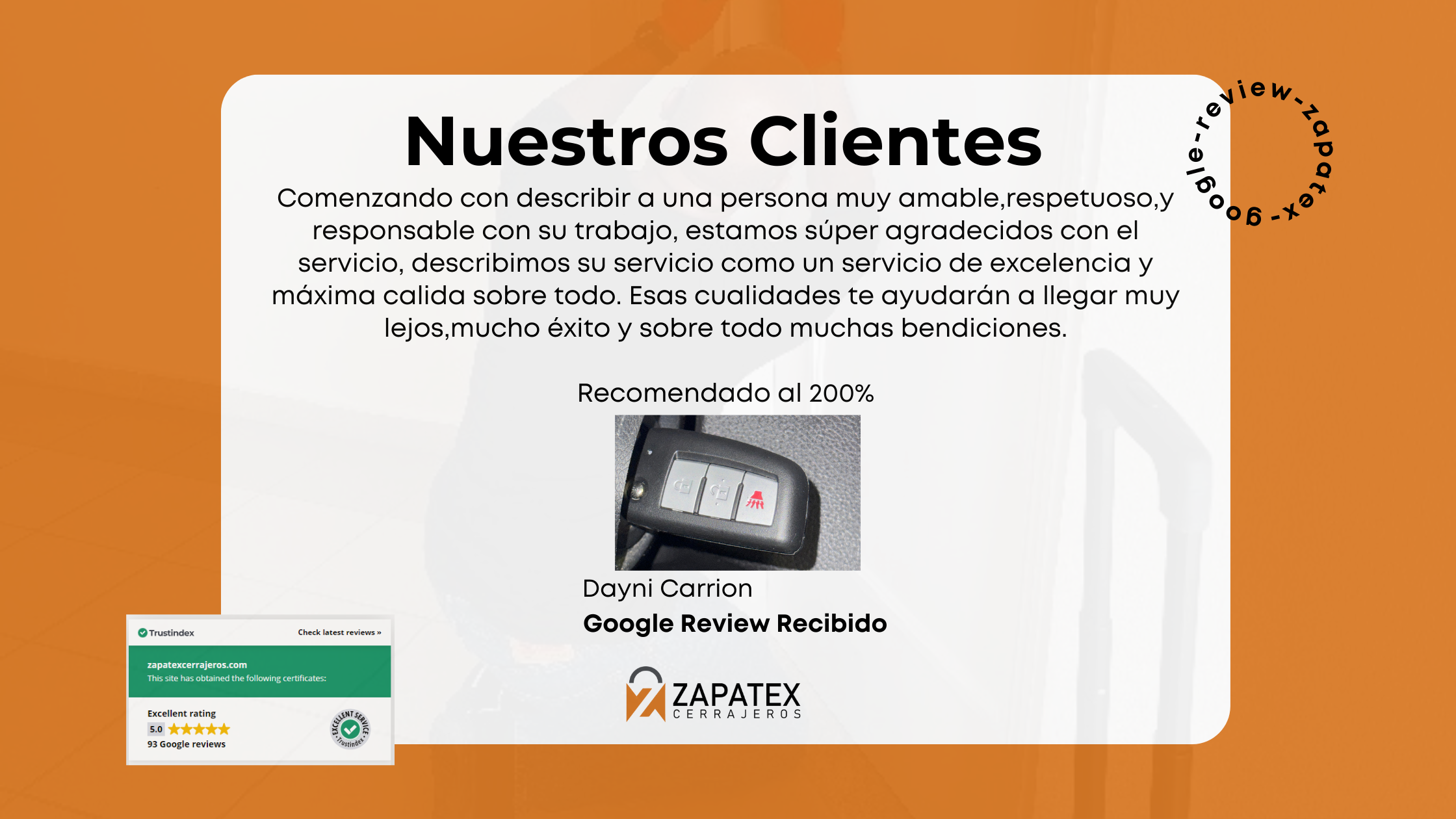 La satisfacción del cliente es nuestro mayor logro en Zapatex Cerrajeros, el mejor cerrajero en Puerto Rico. Hoy compartimos el testimonio de Dayni Carrión, quien destacó la calidad excepcional del servicio profesional que recibió.